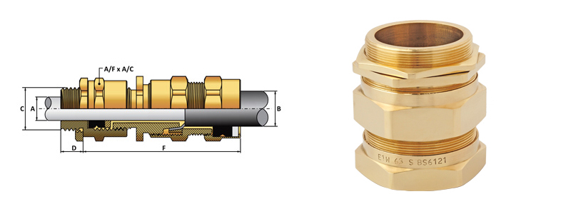 Optional Thread | Thread Length "D" | Cable Dia. "A" | Cable Dia. B | Armour Wire Dia. | Protrusion Length "F" | A/F | A/C | ||||