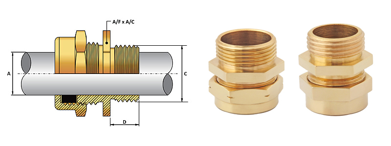 | Gland Size | Entry Thread"C" Metric | Thread Length "D" | Cable Dia. "A" | A/F | A/C | |